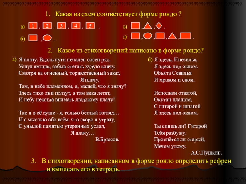 3. В стихотворении, написанном в форме рондо определить рефрен