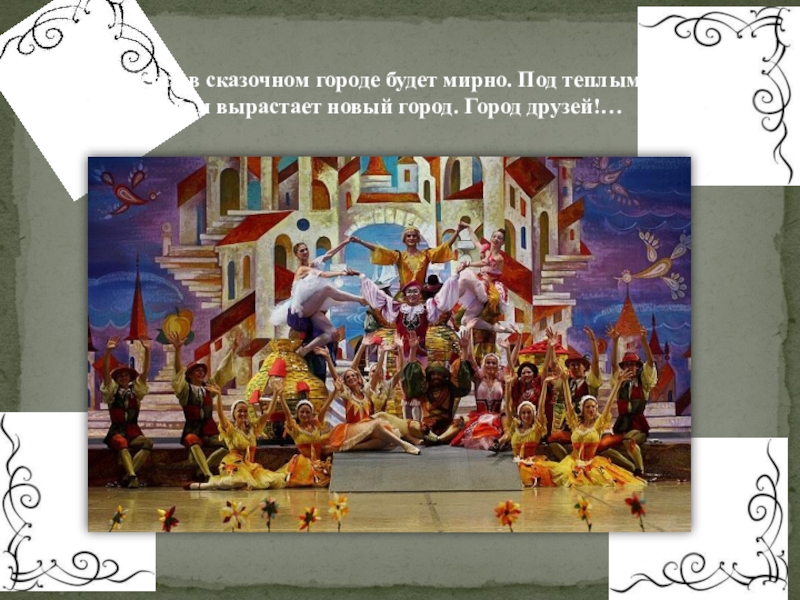 Слайд 23Отныне все в сказочном городе будет мирно. Под теплым солнцем и