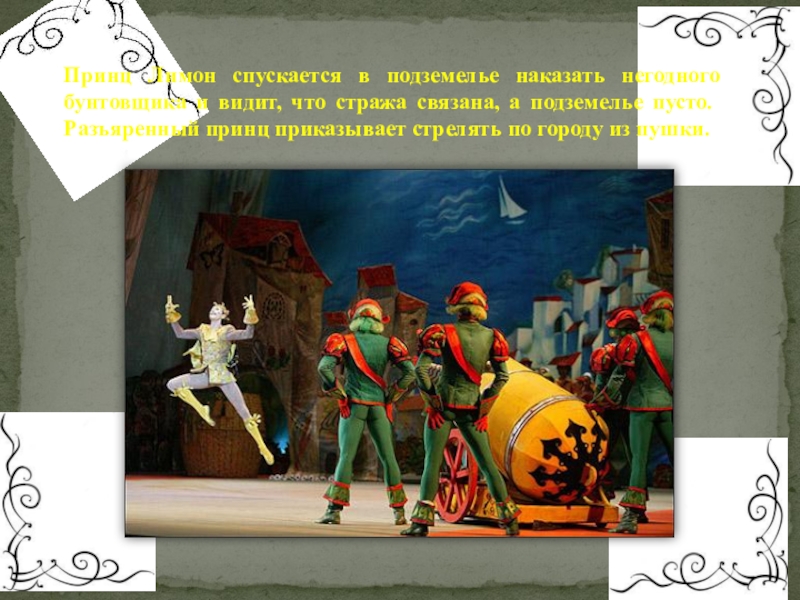 Слайд 21Принц Лимон спускается в подземелье наказать негодного бунтовщика и видит, что