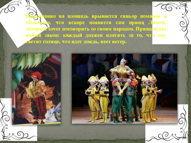 Слайд 13Неожиданно на площадь врывается синьор помидор и объявляет, что вскоре появится