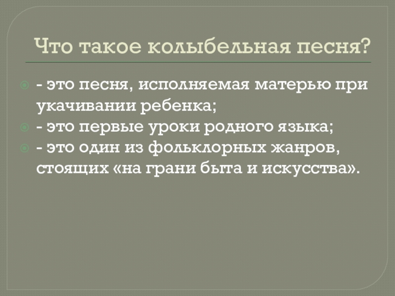 Слайд 3Что такое колыбельная песня?