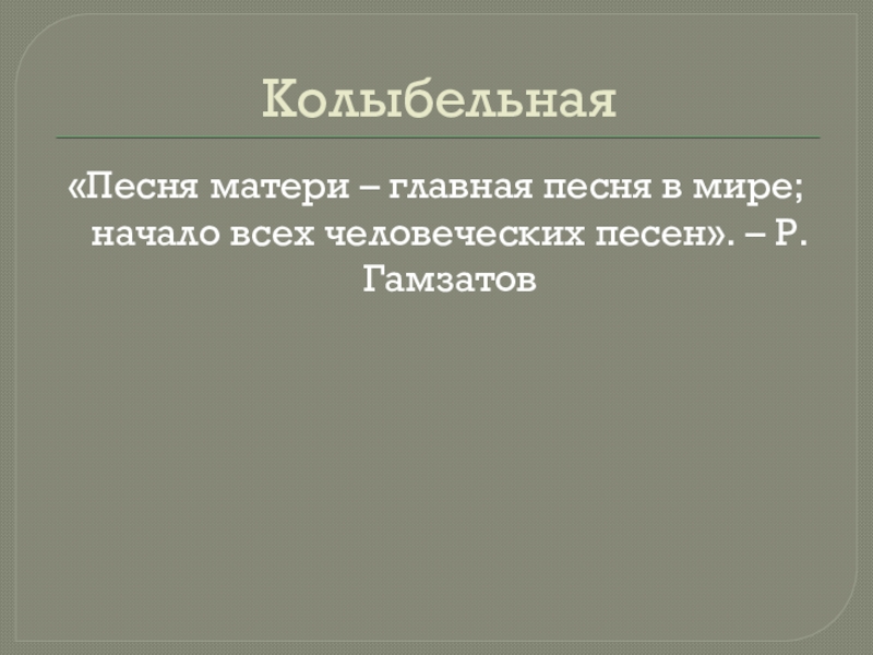 Колыбельная«Песня матери – главная песня в мире; начало всех человеческих песен». – Р. Гамзатов
