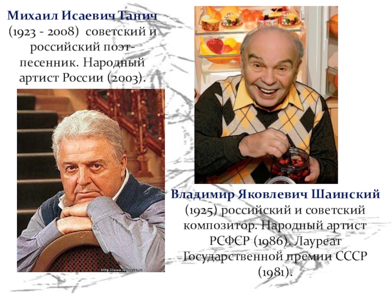 (1925) российский и советский композитор. Народный артист РСФСР (1986). Лауреат Государственной премии СССР (1981).
