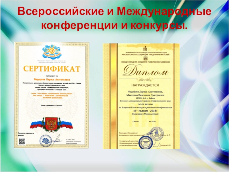 Слайд 7Всероссийские и Международные конференции и конкурсы.
