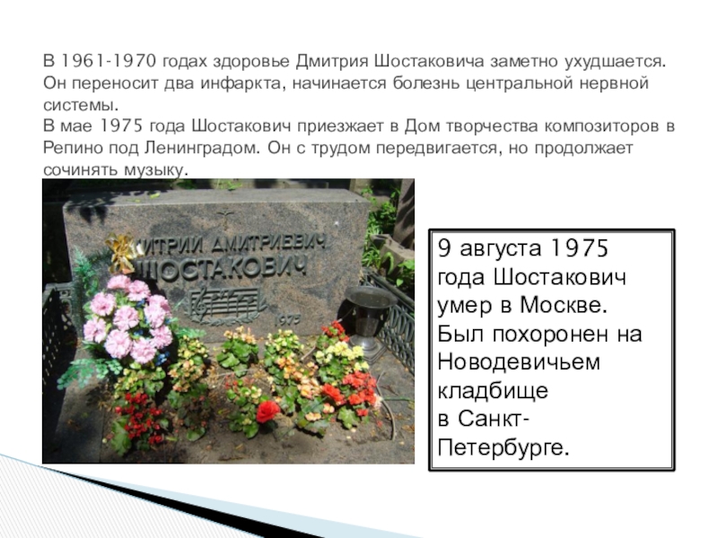 9 августа 1975 года Шостакович умер в Москве.