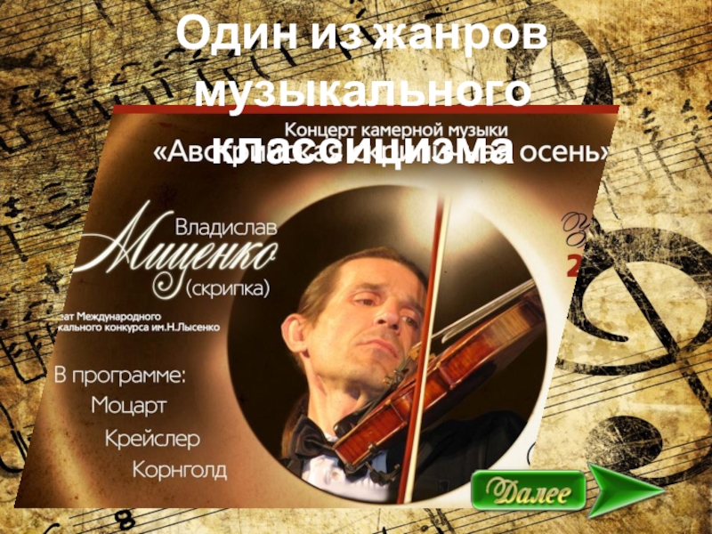 Один из жанров         музыкального классицизма