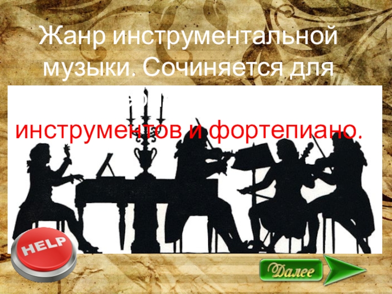 Слайд 32Жанр инструментальной музыки. Сочиняется для камерного состава инструментов и фортепиано.