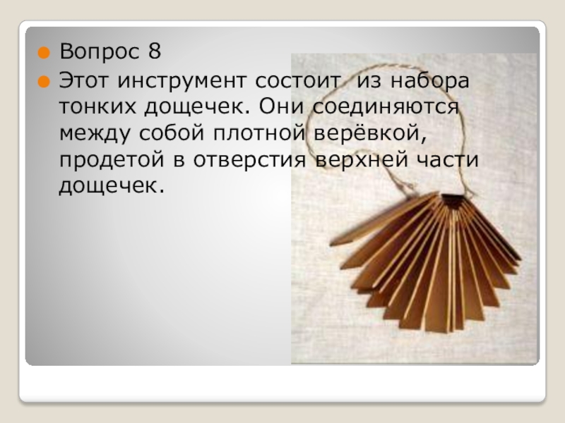 Этот инструмент состоит из набора тонких дощечек. Они соединяются между