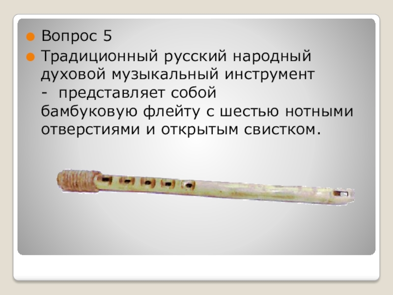 Традиционный русский народный духовой музыкальный инструмент - представляет собой бамбуковую флейту с шестью