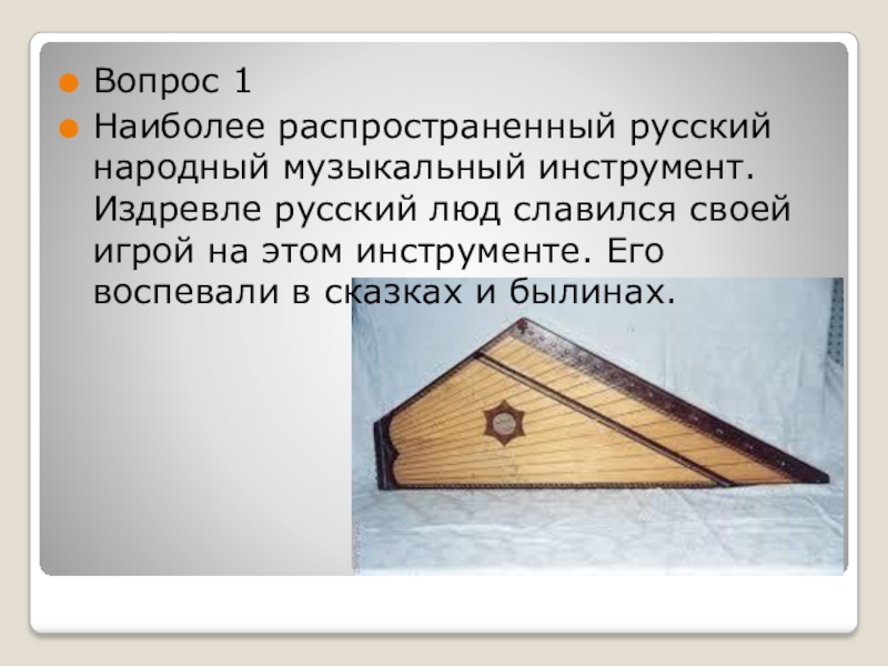 Древнейший Русский народный музыкальный инструмент, за многие минувшие тысячелетия почти