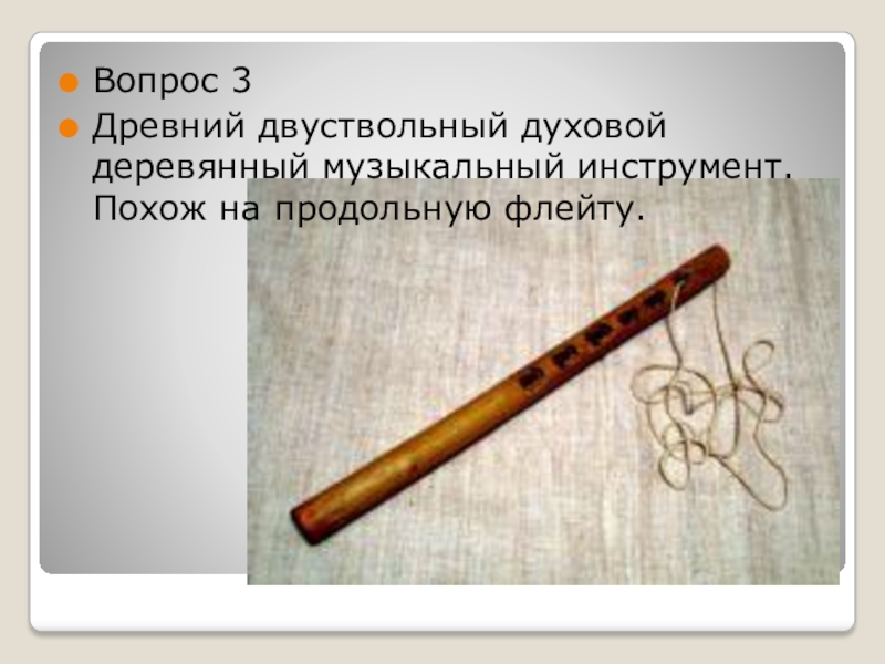 Древний двуствольный духовой деревянный музыкальный инструмент. Похож на продольную флейту.