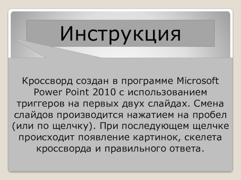 Кроссворд создан в программе Microsoft Power Point 2010 с использованием триггеров