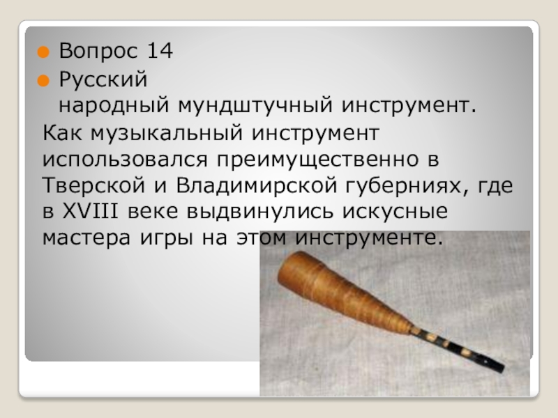 Как музыкальный инструмент использовался преимущественно в Тверской и Владимирской
