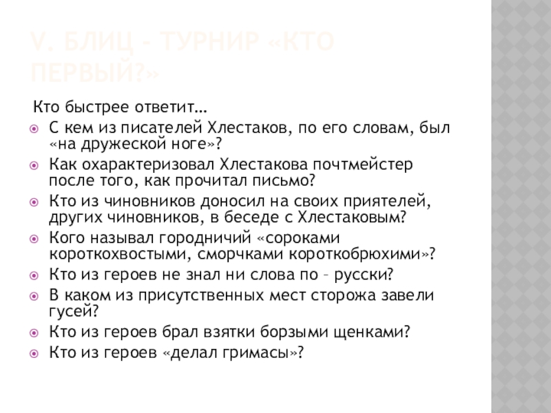 Слайд 9V. Блиц - турнир «Кто первый?»