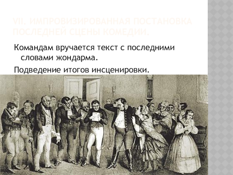 Слайд 14VII. Импровизированная постановка последней сцены комедии.