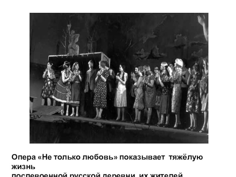Опера «Не только любовь» показывает тяжёлую жизньпослевоенной русской деревни, их жителей.