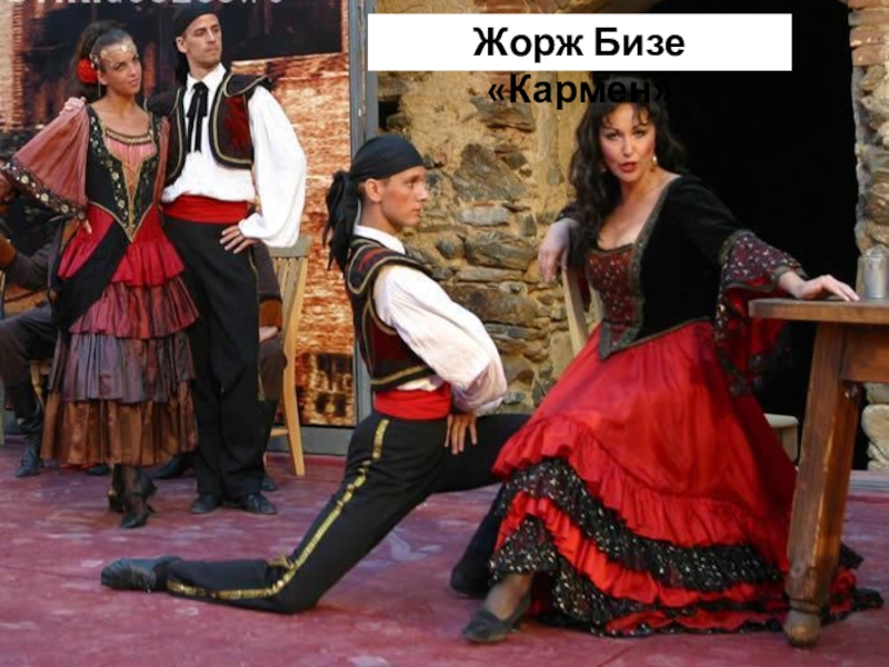 Французский композитор Жорж Бизе использовал в опереяркие, пленительные мелодии испанских танцев «Болеро»,«Хабанера», «Сегидилья», «Фламенко». Вся опера пронизанатанцевальными