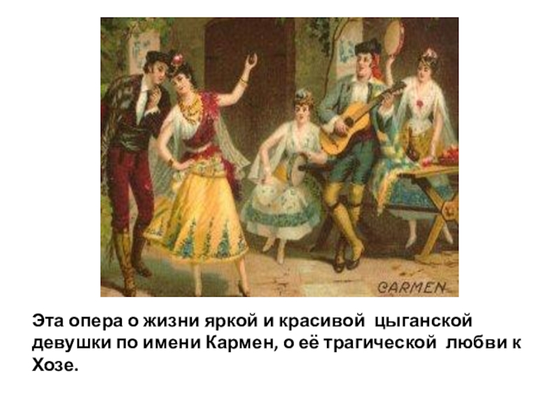 Слайд 8Эта опера о жизни яркой и красивой цыганской девушки по имени