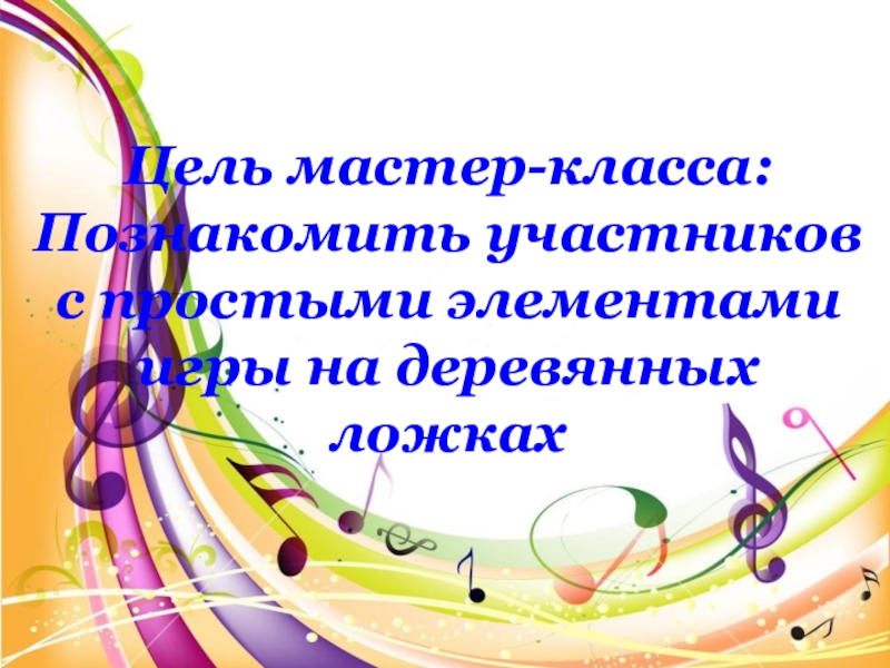 Слайд 2Цель мастер-класса: Познакомить участников с простыми элементами игры на деревянных ложках