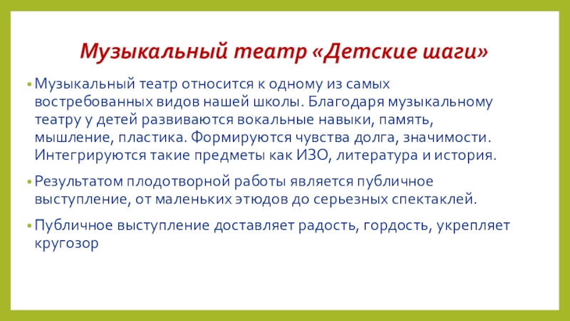 Слайд 13Музыкальный театр «Детские шаги»