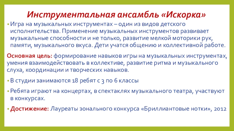 инструментальной студии «Искорка»,