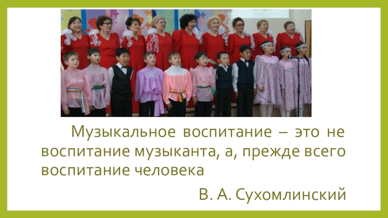 Слайд 3 Музыкальное воспитание – это не воспитание