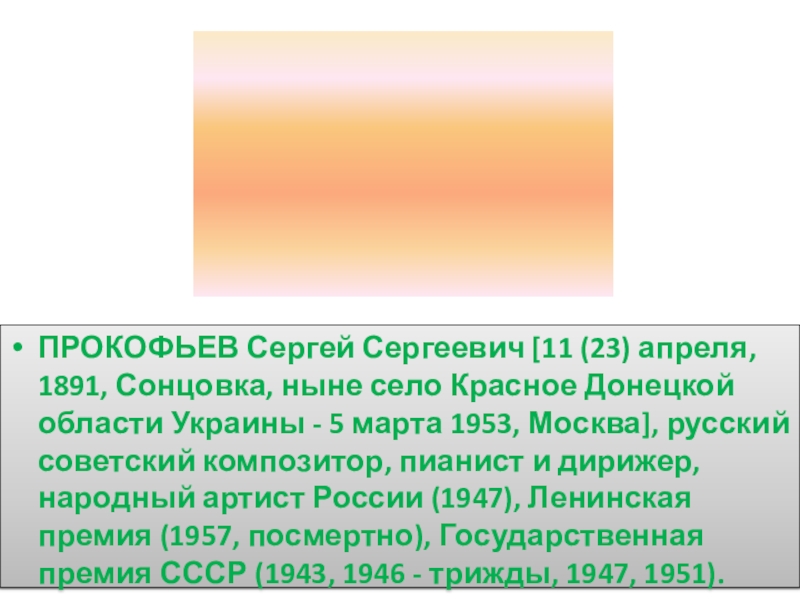 Слайд 2ПРОКОФЬЕВ Сергей Сергеевич [11 (23) апреля, 1891, Сонцовка, ныне село Красное Донецкой