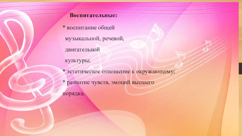 * воспитание общей музыкальной, речевой, двигательной