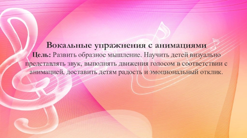 звук, выполнять движения голосом в соответствии с анимацией, доставить детям радость и эмоциональный отклик.