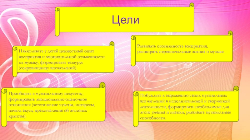 Накапливать у детей ценностный опыт восприятия и эмоциональной отзывчивости на музыку,