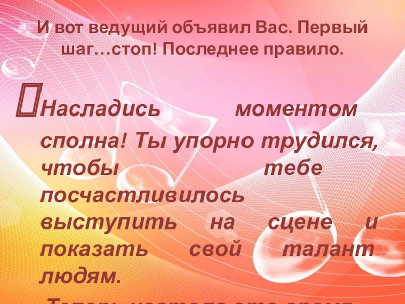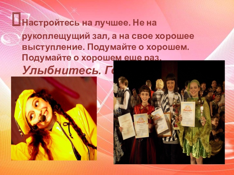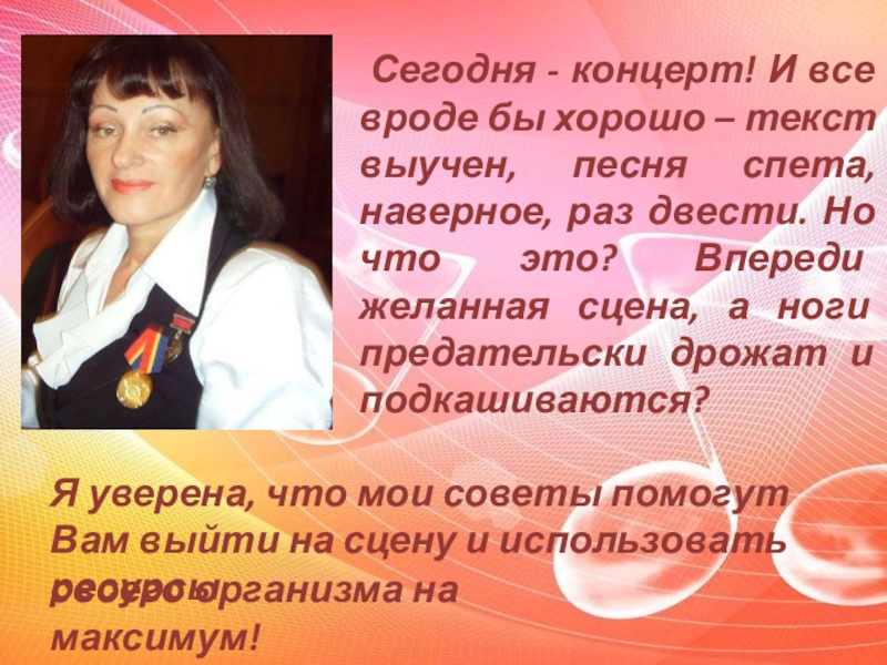 Я уверена, что мои советы помогут Вам выйти на сцену и использовать ресурсы