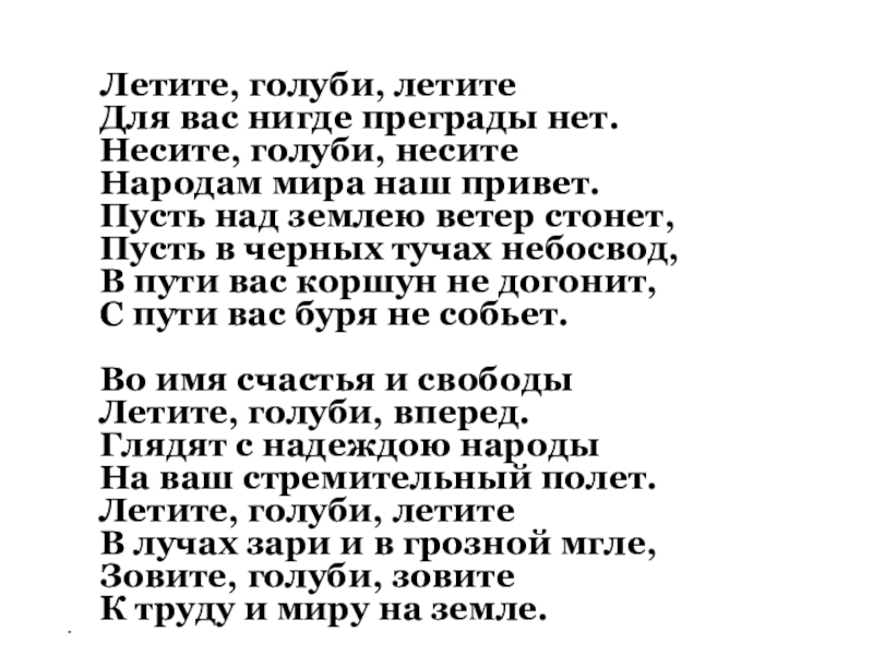Летите, голуби, вперед.