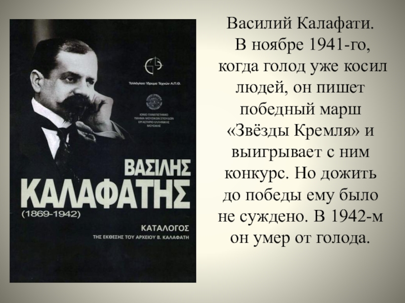 конкурс. Но дожить до победы ему было не суждено. В 1942-м он умер от голода.