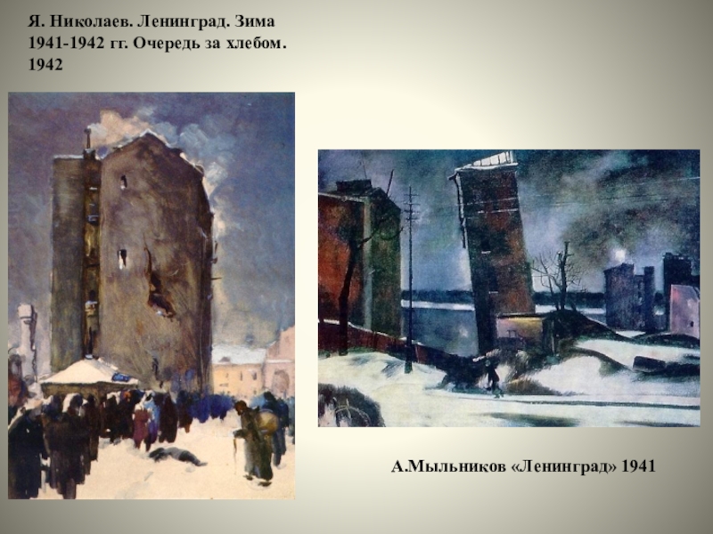 Слайд 26Я. Николаев. Ленинград. Зима 1941-1942 гг. Очередь за хлебом. 1942