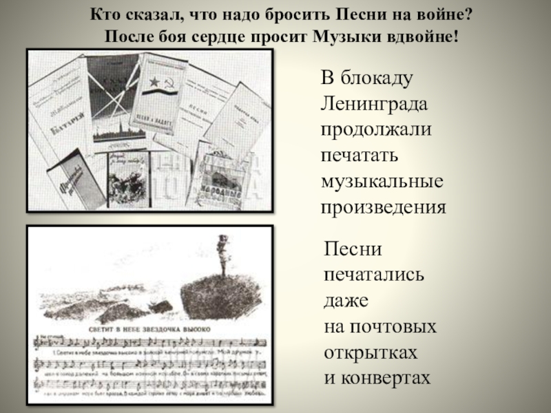 Слайд 7Их песни, пьесы, марши звучали в промёрзших концертных залах, из чёрных
