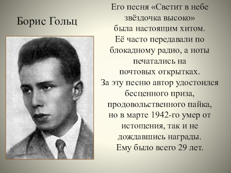 Слайд 10Его песня «Светит в небе звёздочка высоко»