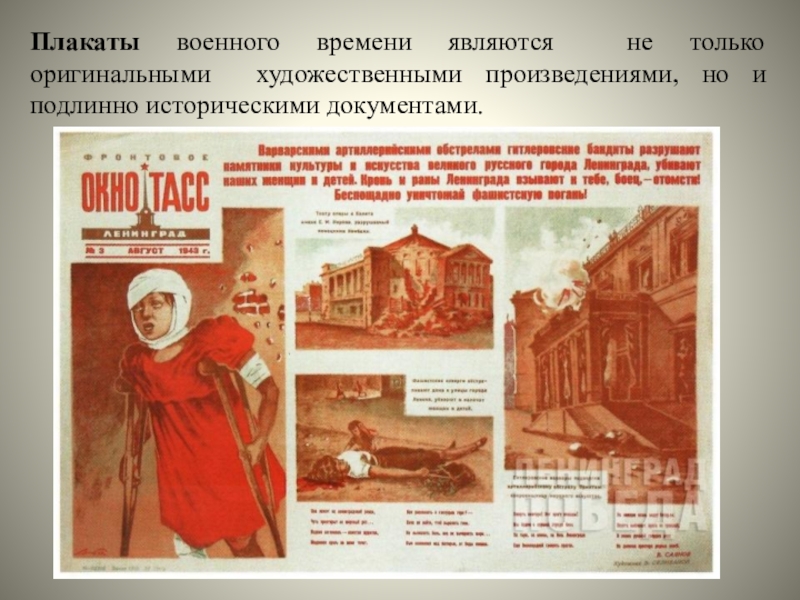 Слайд 27Плакаты военного времени являются не только оригинальными художественными произведениями, но и