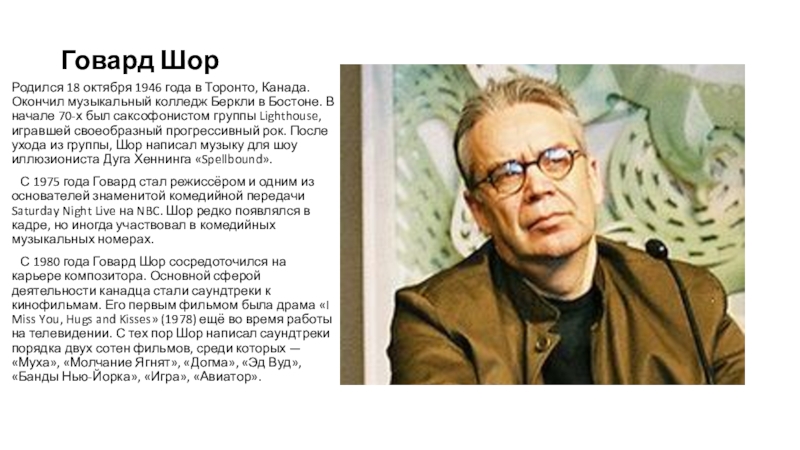 Наибольшую славу Шору принесла кинотрилогия «Властелин Колец» его друга, режиссёра