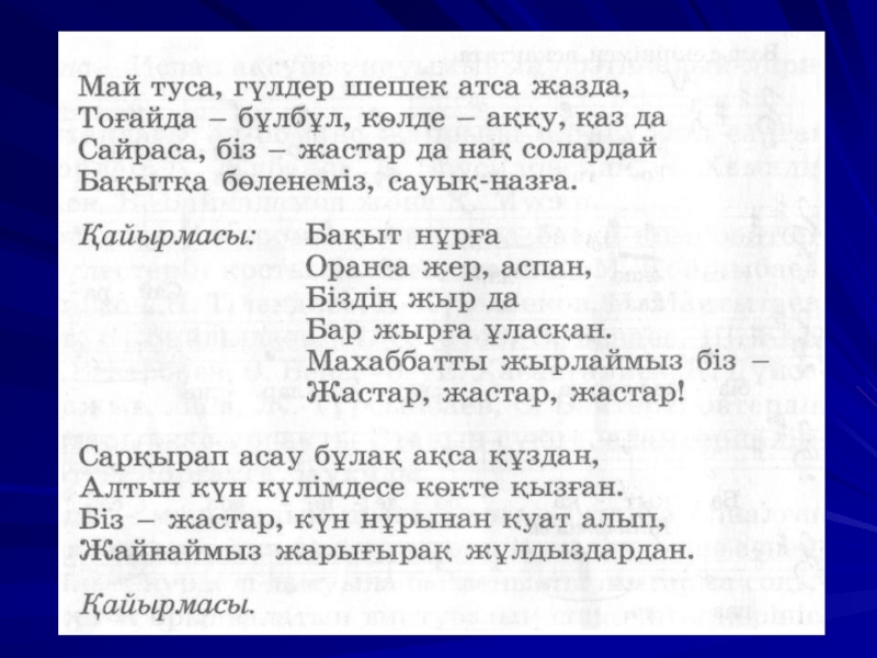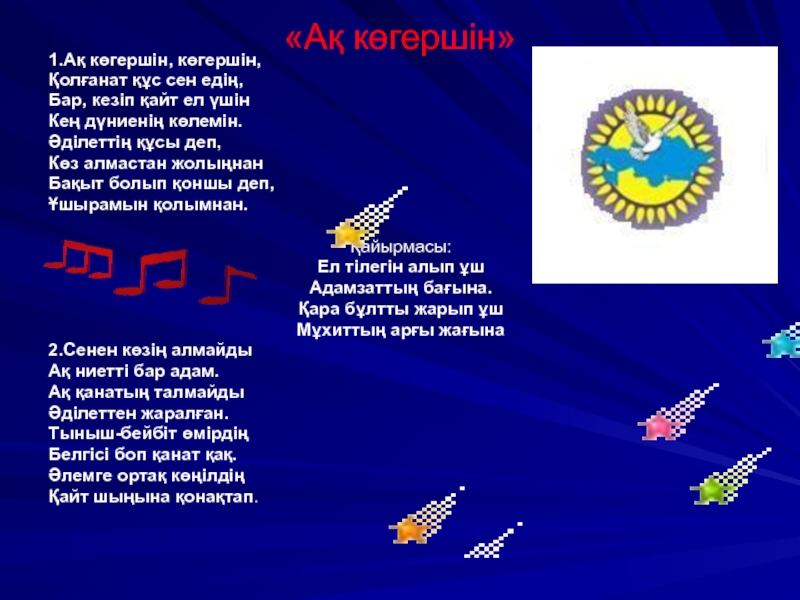 Оқушылардың танымдық іс-әрекетін дамыту, ән иірімдерін дұрыс ести білу, мелодиялық ерекшеліктерін сезіну қабілеттерін дамыту, әнді дұрыс орындауға машықтандыру.