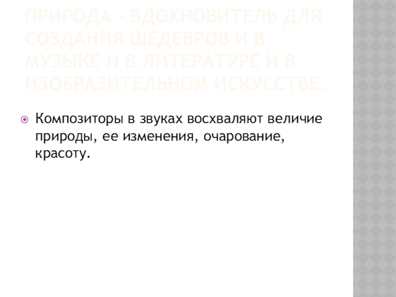 Композиторы в звуках восхваляют величие природы, ее изменения, очарование, красоту.