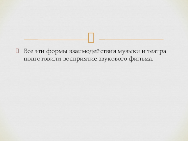 Слайд 5Все эти формы взаимодействия музыки и театра подготовили восприятие звукового фильма.