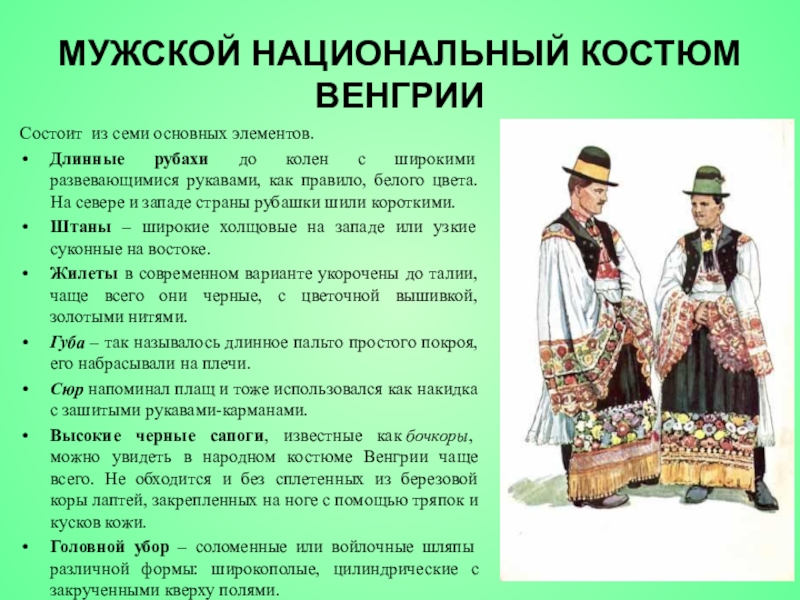 Слайд 9МУЖСКОЙ НАЦИОНАЛЬНЫЙ КОСТЮМ ВЕНГРИИ