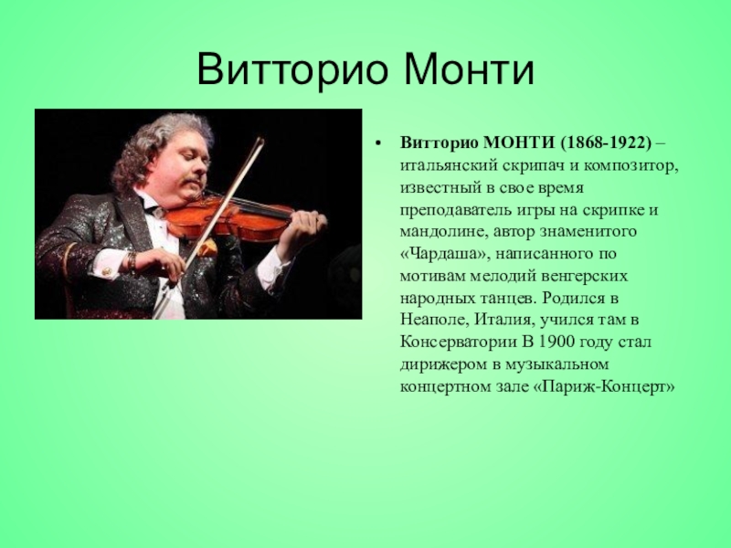 Витторио МОНТИ (1868-1922) – итальянский скрипач и композитор, известный в свое