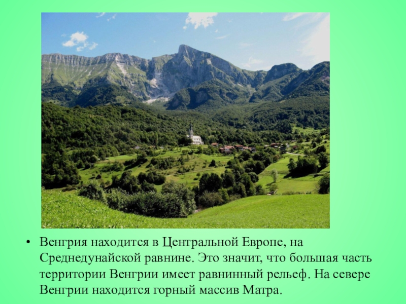 Слайд 3Венгрия находится в Центральной Европе, на Среднедунайской равнине. Это значит, что