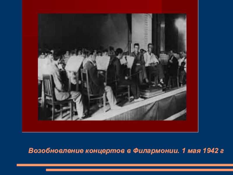 Слайд 12Возобновление концертов в Филармонии. 1 мая 1942 г