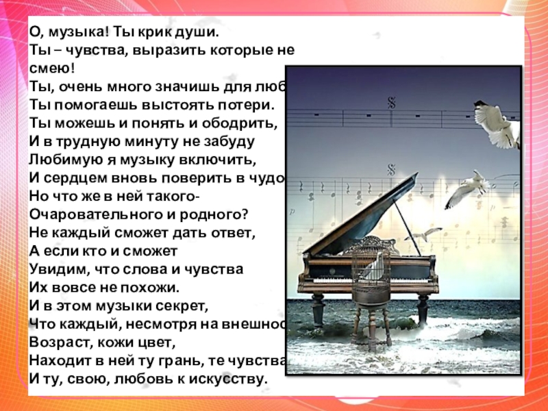 2. МУЗЫКА – не только направлена на развитие души человека, но и может очень точно и образно передать состояние этой души.