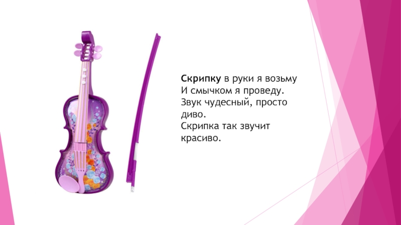 Слайд 10Скрипку в руки я возьму И смычком я проведу. Звук чудесный, просто диво. Скрипка так