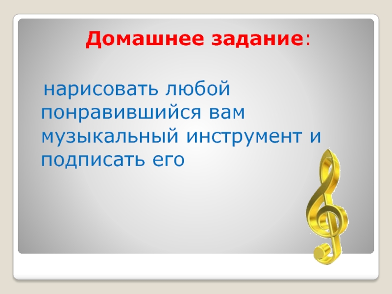 Домашнее задание:  нарисовать любой понравившийся вам музыкальный инструмент и подписать его
