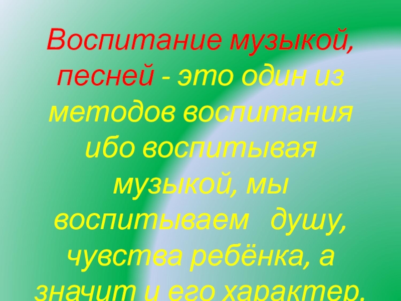Слайд 11Воспитание музыкой, песней - это один из методов воспитания ибо воспитывая