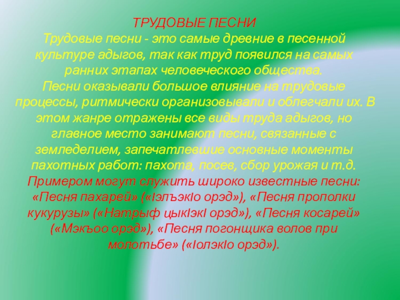 Слайд 15ТРУДОВЫЕ ПЕСНИ